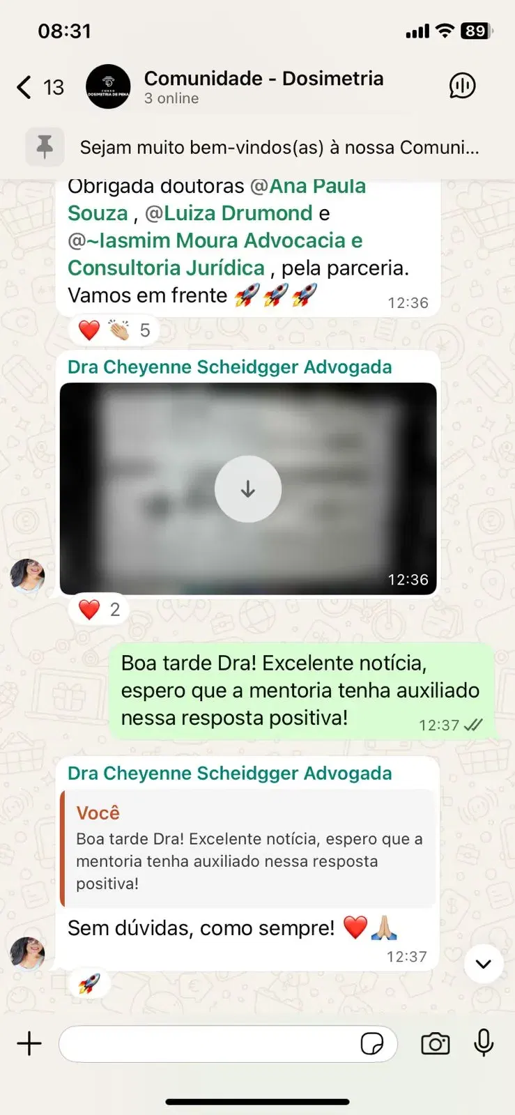 O suporte na comunidade faz toda a diferença — precisei tirar dúvidas para uma defesa oral e recebi toda a orientação que precisava.
